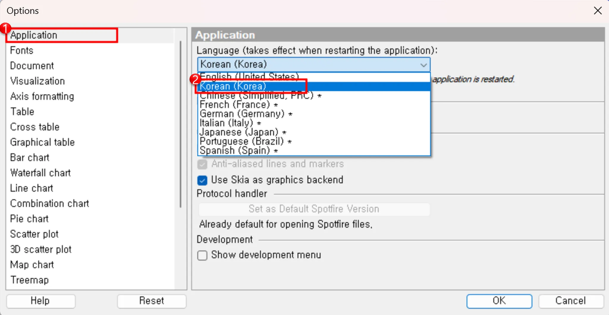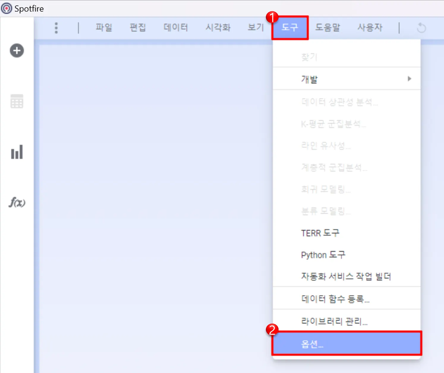 본격적인 Spotfire사용에 앞서 기본적인 셋팅을 조절하겠습니다.
