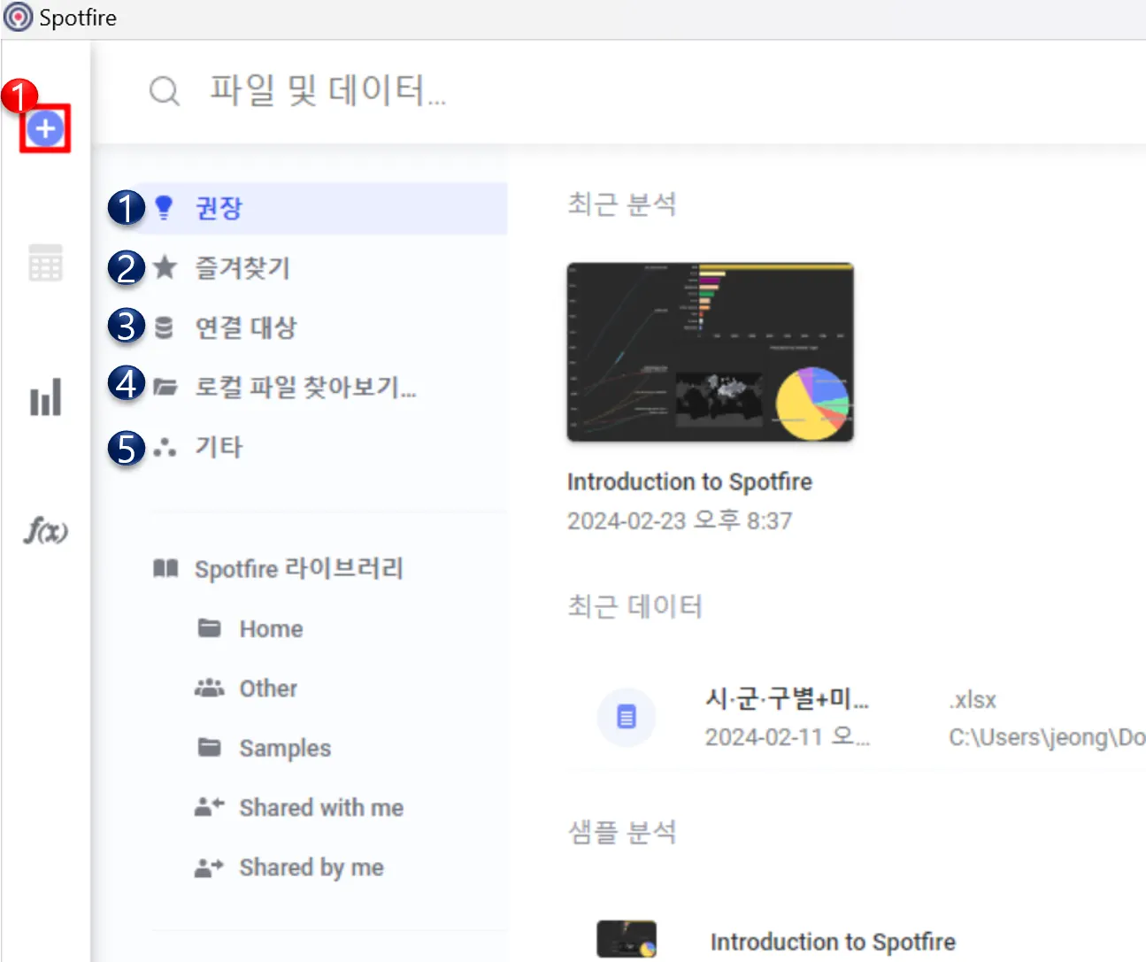 다양한 데이터 소스 지원: Spotfire는 다양한 유형의 데이터 소스와 호환됩니다. 로컬 데이터 파일, 스프레드시트, 클라우드 서비스 등 다양한 소스로부터 데이터를 쉽게 통합하고 분석할 수 있습니다.