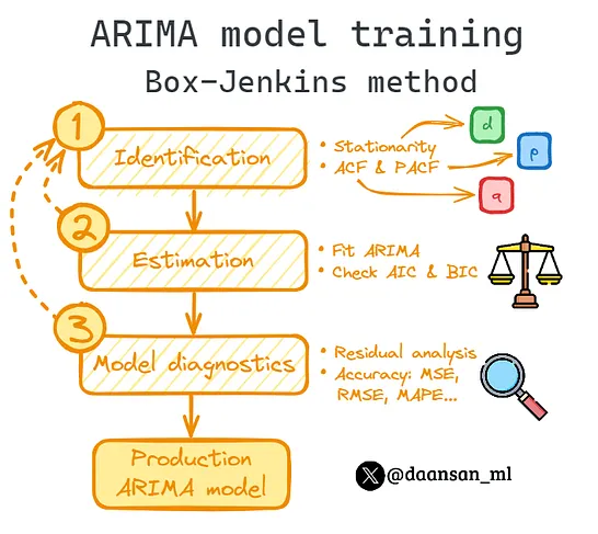 This week is the time to give an overall view of the ARIMA model methodology, also called the Box-Jenkins method. We will link each step to previous issues of MLPills, so you can revise each step and become an ARIMA master!